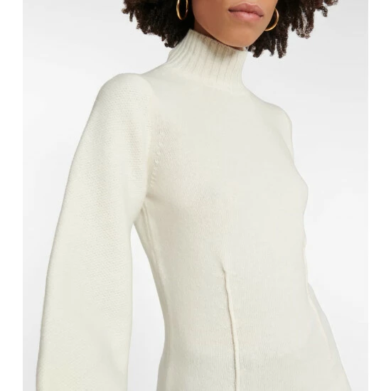 For the most luxurious of wardrobe staples, like the Bold Structure sweater, trust in Dorothee Schumacher. Made from wool and cashmere with waffle-knit patterning, it’s shaped with elongating vertical darting, wide sleeves, and a turtleneck.