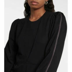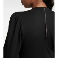 Made from a compact knit to an A-line silhouette, Dorothee Schumacher’s City Allure maxi dress is a minimalistic style enhanced by elegant detailing – a layered neckline and faux leather trims along the blouson sleeves.