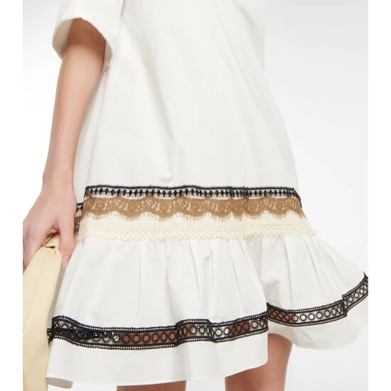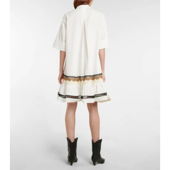 Look to this minidress from Dorothee Schumacher for an effortless summer style. Made from cotton poplin, the tunic style features eye-catching lace trims on the sirt.