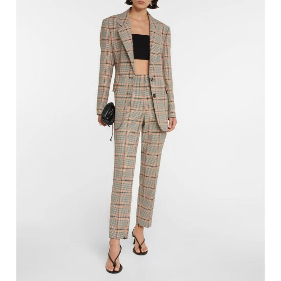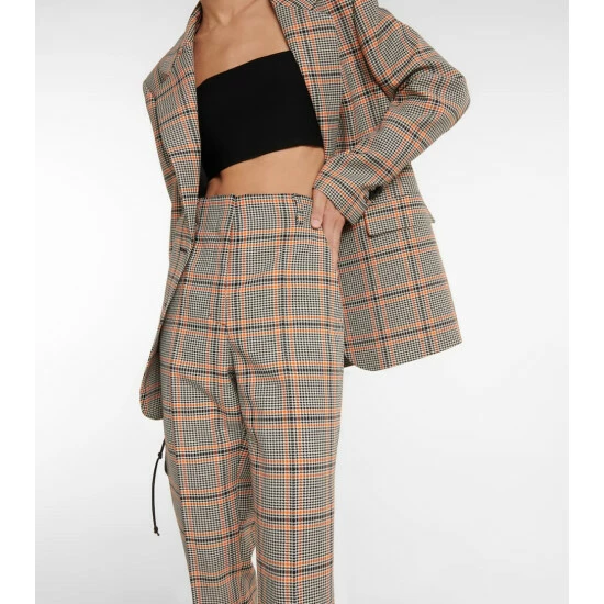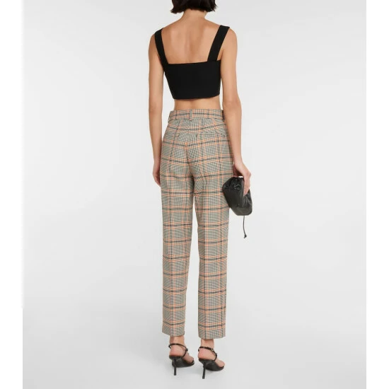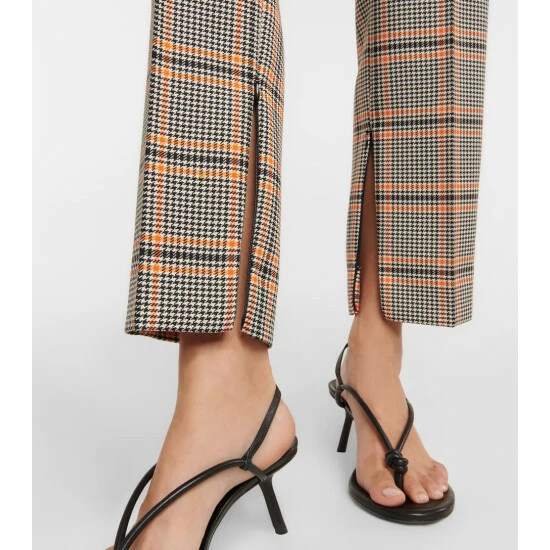 Dorothee Schumacher’s Modern Heritage pants are made from a wool-blend houndstooth fabric with black and orange checks. A high-rise design, they’re tailored with press-pleated straight legs.