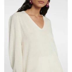 The Modern Statements sweater from Dorothee Schumacher is a classic yet refreshing addition to your cold-weather closet. Knitted from a warm blend of wool and cashmere, the V-neck style comes in an off-white hue.