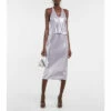 The Poplin Power dress from Dorothee Schumacher is made from pure cotton poplin. It has a ruched bodice, and off-shoulder neckline, and a flared midi skirt.
