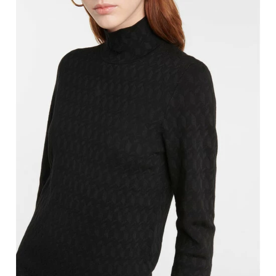 Expand your knit capsule with Dorothee Schumacher’s Sleek Graphics top. This classic turtleneck style is made from wool-blend jacquard featuring a geometric repeat pattern throughout.