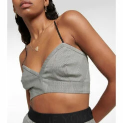 The Sporty Elegance bra from Dorothee Schumacher is made from virgin wool and printed with an all-over checked pattern.