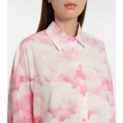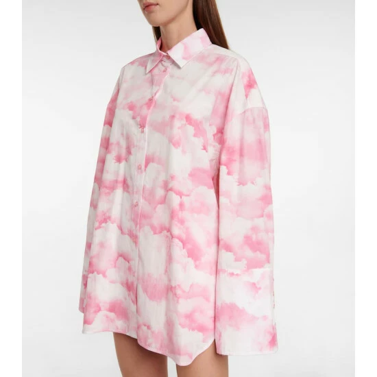 Rotate Birger Christensen’s Begonia features a pink cloudy sky print. It’s cut from cotton poplin into an oversized shape with wide sleeves and tonal logo embroidery.