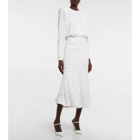 The Rotate Birger Christensen Bridal Billan Embellished Midi Dress is absolutely stunning. The intricate embellishments and the fit are perfect for a bridal event. I felt like a princess!