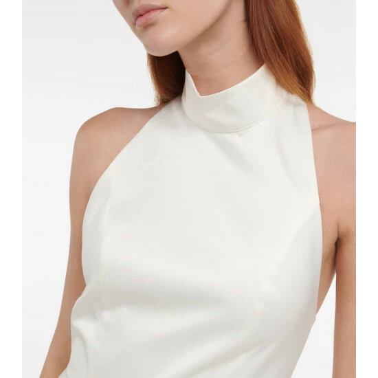 Slip into the Cora minidress from Rotate Birger Christensen for wedding celebrations. It’s made from satin and has a halterneck silhouette with a nipped waist, and a charming flared skirt.