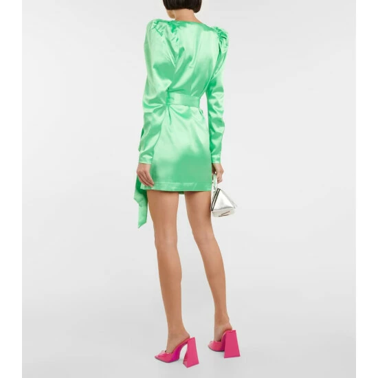 The Bridget minidress from Rotate Birger Christensen is inspired by the iconic Number 5 dress from the label’s first collection. Featuring puff sleeves and a self-tie wrap-front, it’s made from shiny green satin.