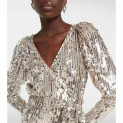 The Bridget sequined minidress from Rotate Birger Christensen is perfect for party season. It has a flattering wrap silhouette with puff sleeves, a plunging neckline, and a self-tie front.