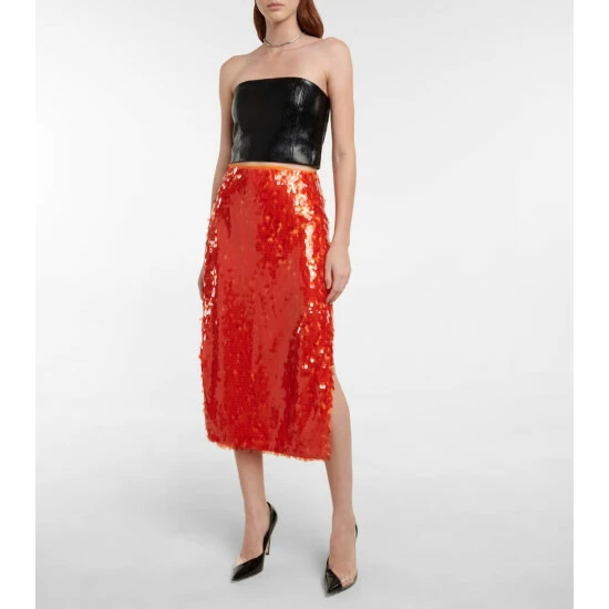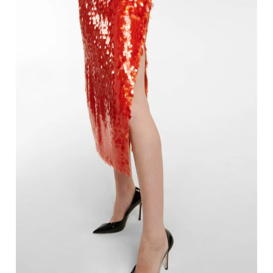 Turn heads with every movement in the Caitlin midi skirt from Rotate Birger Christensen. Shaped for a figure-skimming fit, it has a high-rise waist, thigh-high side slit, and all over sequins.