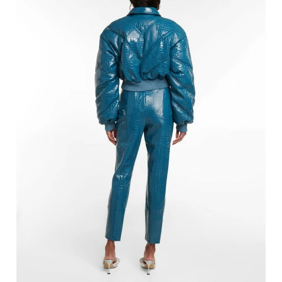 This bomber jacket from Rotate Birger Christensen is made from quilted, padded, glossy faux leather with glamorous croc-effect embossing. It’s made for a cropped, boxy fit with ribbed trims and side-slit pockets.