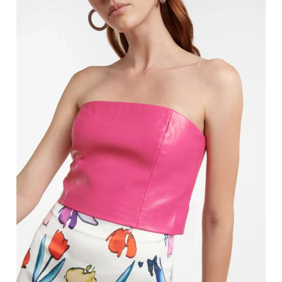 The Emili bustier from Rotate Birger Christensen is made from glossy faux leather. This logo-embossed strapless design has a zipped back.