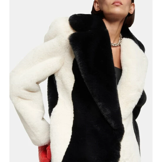 Bring the heat into the cold season with Rotate Birger Christensen’s coat. Made from black and white faux fur, the plush style has a long-line silhouette and a V-neck shape with a wide collar.