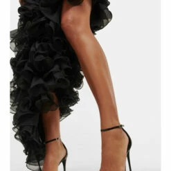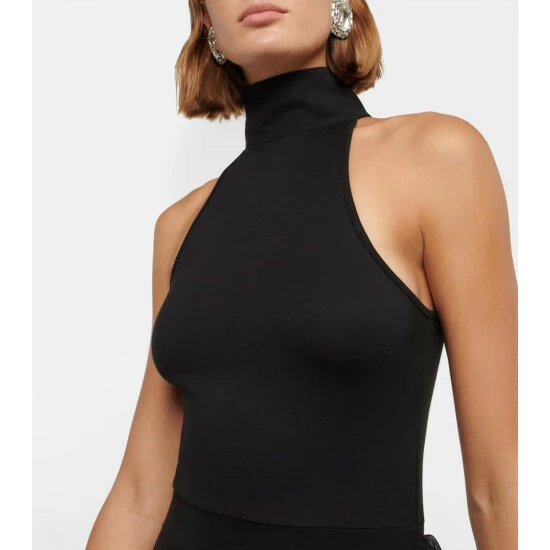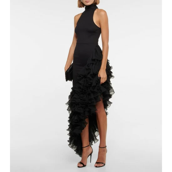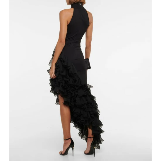 This dress from Rotate Birger Christensen promises an elegant entrance with a frilled asymmetric skirt. The voluminous bottom is balanced with a close-fit, high-neck jersey bodice.