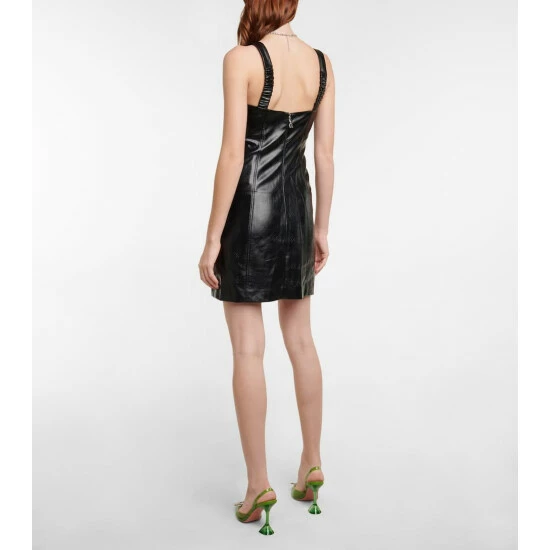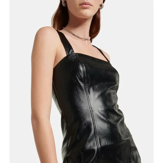 The Herlina minidress from Rotate Birger Christensen is shaped into a ’90s-inspired silhouette. Made from logo-embossed faux leather, it has a square neckline and wide shoulder straps.