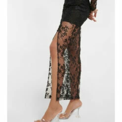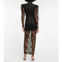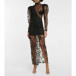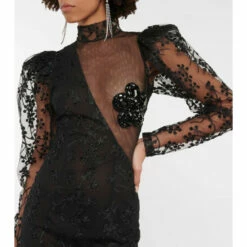 Fused with retro glamour, this midi dress from Rotate Birger Christensen is made from mesh with a chic high-neck and puff sleeves. It features a floral motif with embroidered beads and a crystal-encrusted flower at the chest.