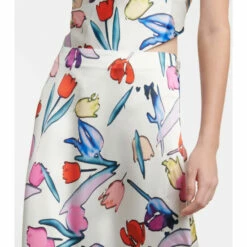 The A-line Kicki midi skirt from Rotate Birger Christensen is made from recycled fabric with an abstract floral print. It features cutout detailing at the back with a logo charm.