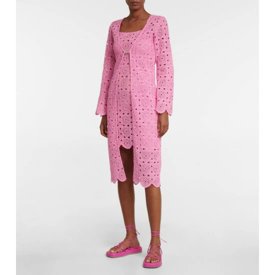 Elevate your summer edit with beachwear exclusives from Rotate Birger Christensen. The Kwamie beach cover-up is intricately crocheted with flared arms and scalloped hems, and is finished with an R metal clasp.