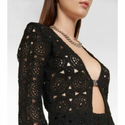 The Kwamie cardigan from Rotate Birger Christensen is primed for sundown and beachwear styling. It’s made from intricately crocheted cotton with scalloped edges and a monogram clasp fastening. Style with the matching pants.