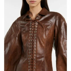This minidress from Rotate Birger Christensen balances ballooned sleeves with a top-to-bottom lace-up closure. The faux leather design has a classic collar and complementary lace stitching along the sleeves.