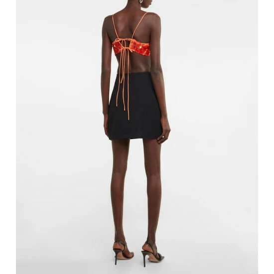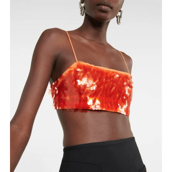 Introducing the ultimate party piece from Rotate Birger Christensen: the Lotte top. Glistening embellishments cover the cropped silhouette, while thin shoulder straps and an open back with string ties add skin-exposing drama.