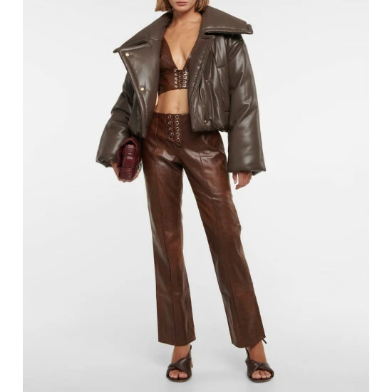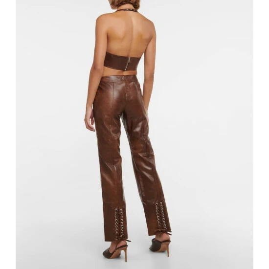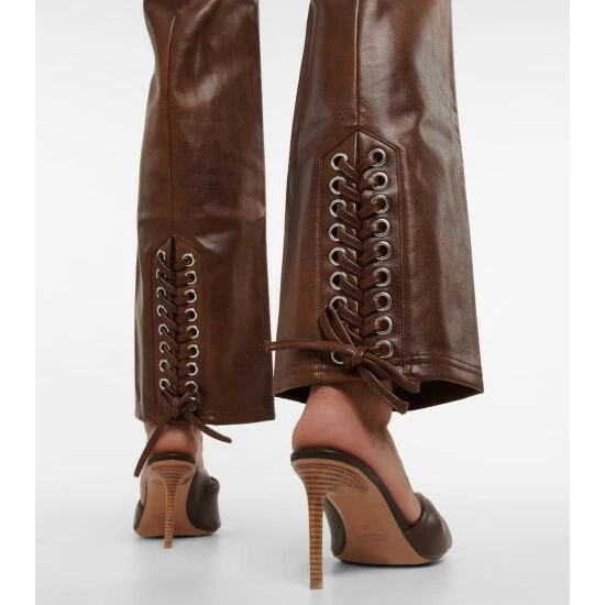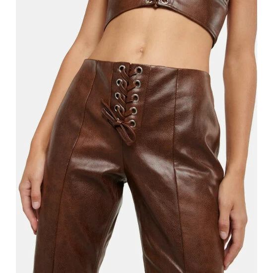 Rotate Birger Christensen designs these pants in a regular fit with a flared finish. Made from faux leather, the pleated design has a low-waisted front lace closure with silver-toned eyelets.