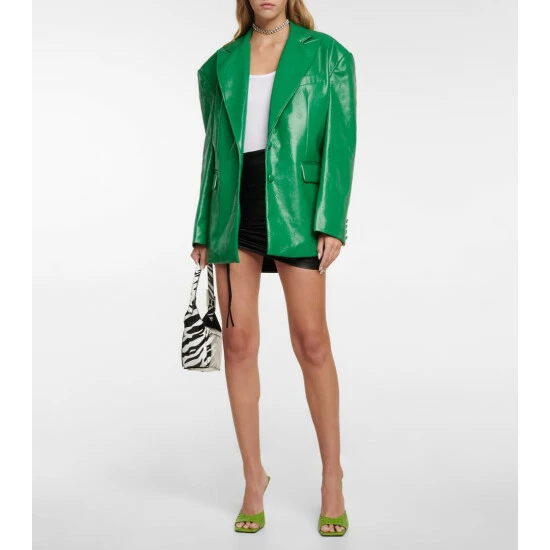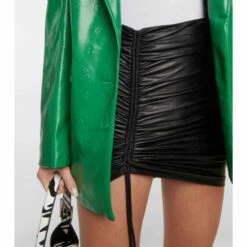Add the black Margarita miniskirt from Rotate Birger Christensen into your day-to-dark edit. The vinyl-effect style is defined by ruching from hip to hem that can be adjusted via ties.