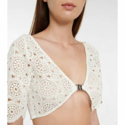 Sweep the Milandran shrug from Rotate Birger Christensen over slip dresses come sundown. The white style is made from intricately crocheted cotton and fastens with a monogram clasp.