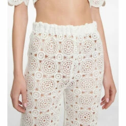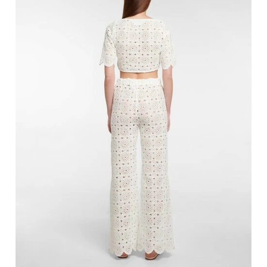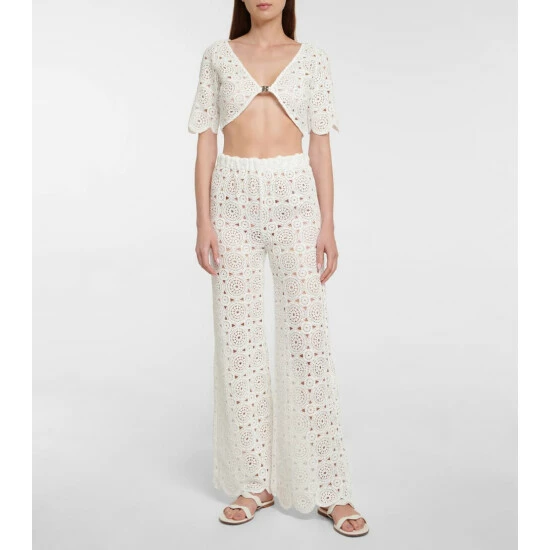 The Nola pants from Rotate Birger Christensen will be your new favorite summer staple. Crocheted from lightweight cotton-blend yarns into a floral pattern, they have flared legs with scalloped hems and an elasticated waist.