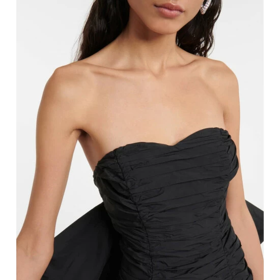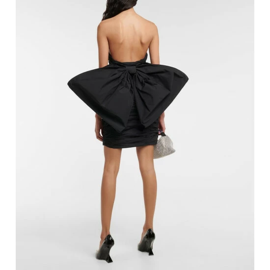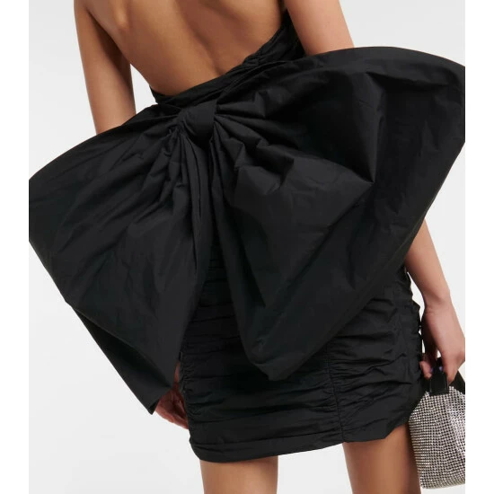 Made from a textural pleated fabric, this minidress from Rotate Birger Christensen is a strapless design that’s defined by an exaggerated bow appliqué at the back.