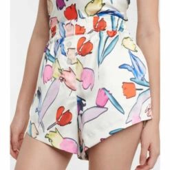 The Ponisan shorts from Rotate Birger Christensen are made from recycled fabric with an abstract floral print. They’re shaped with a buttoned front, wide legs, curved, high-cut hems, and a high-rise, elasticated waist.