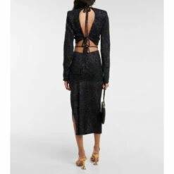 Ready for your next social gathering is this maxi dress from Rotate Birger Christensen. This piece features a V-neckline and a beautifully draped skirt.