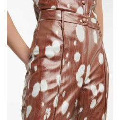 The Robyn pants from Rotate Birger Christensen are shaped with a high-rise waist and press-pleated straight legs. Cut from faux leather, they’re defined by an abstract animal print and subtle logo embossing all over.