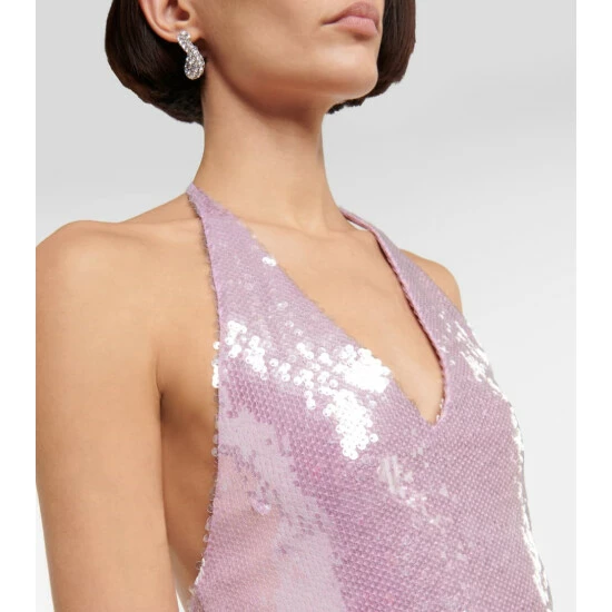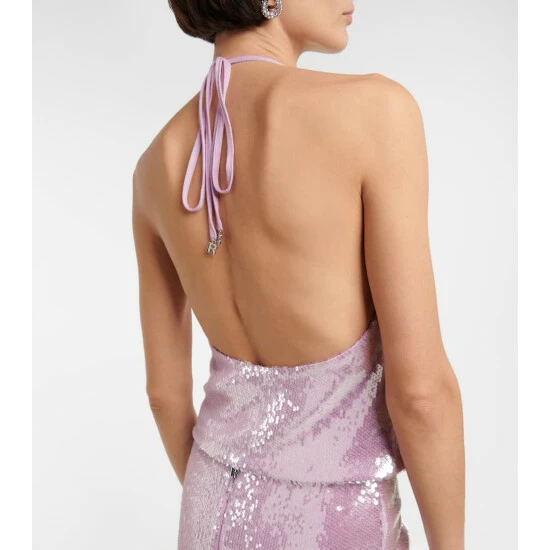 Coated in sequins, this top from Rotate Birger Christensen is a halterneck design with an open back.