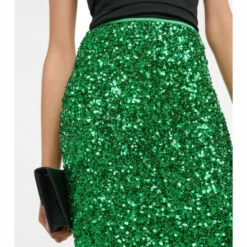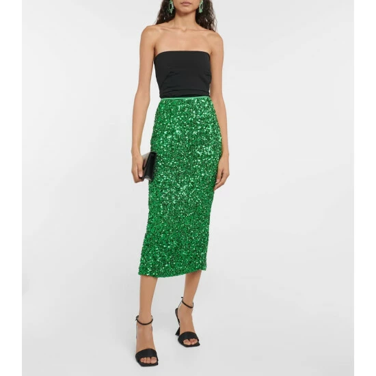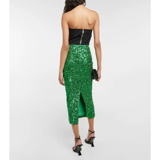 This opulent pencil skirt from Rotate Birger Christensen is primed for parties. The green knee-length design is embellished with shimmering sequins all-over and sits high on the waist.