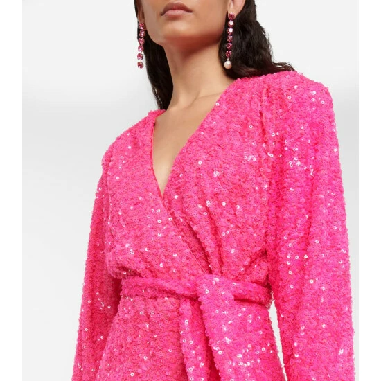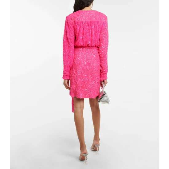 Slip into this sequined minidress from Rotate Birger Christensen for a night out on the town. The long-sleeve style has a wrap silhouette with a matching belt.
