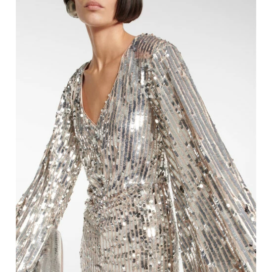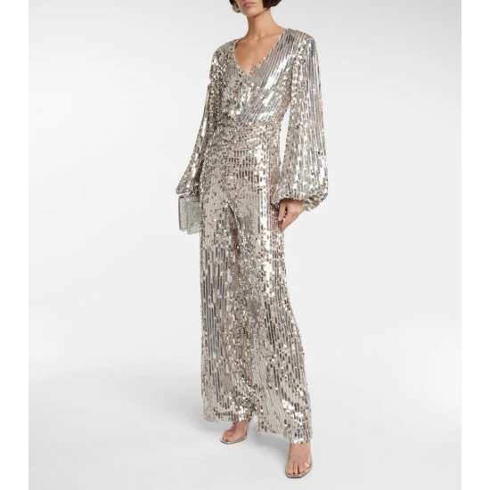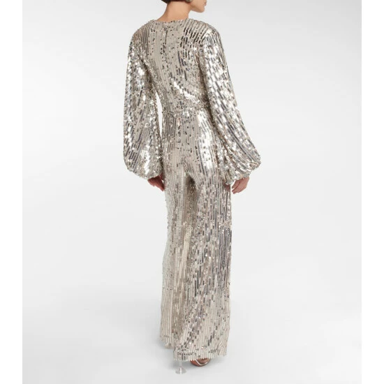 Enliven your after-dark edit with the dazzling Sirin jumpsuit from Rotate Birger Christensen. Decorated allover with sequins, it’s shaped with bishop sleeves, wide legs, and a high-waisted gathered seam for a sculpting cinch.