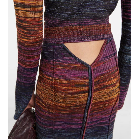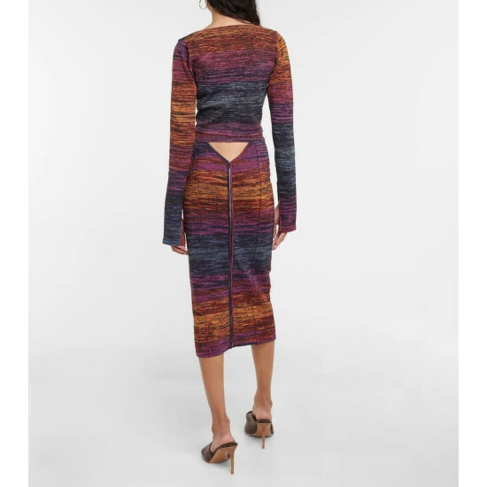 Space-dyed in multicolored stripes, this knit midi skirt from Rotate Birger Christensen is shaped into a tight-fitting silhouette with an elasticated waistband, a zipper, and an eye-catching cutout at the back.
