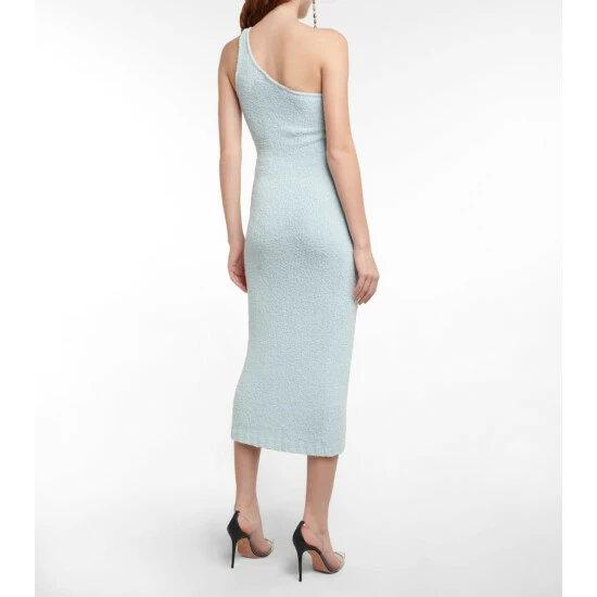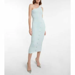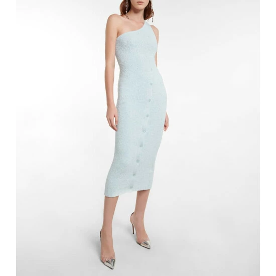 A one-shoulder neckline lends contemporary edge to the figure-hugging Yvonne mdi dress from Rotate Birger Christensen. It’s knit from a cotton and cashmere-blend with buttons that can be styled to create an alluring front slit.